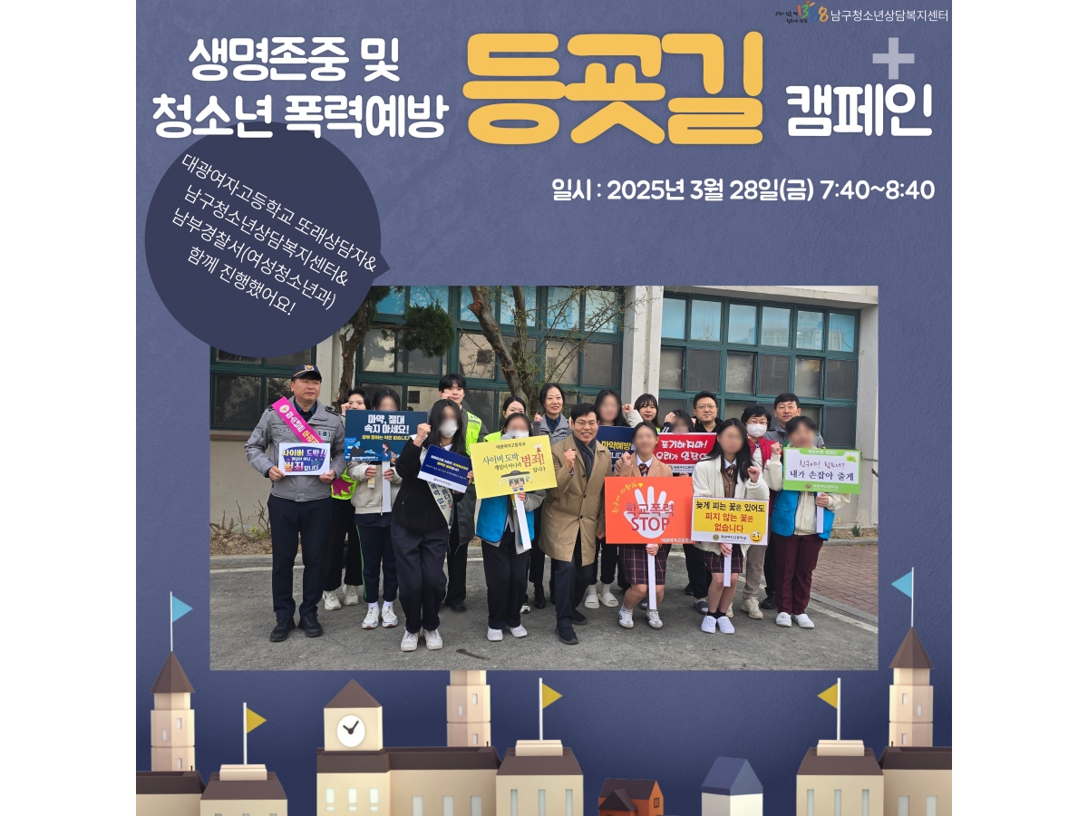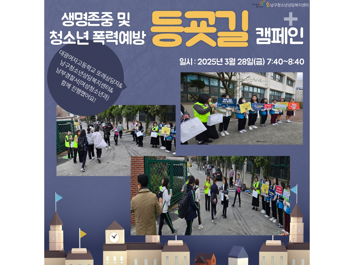 광주남구청소년상담복지센터 - [25.03.28] 대광여자고등학교 생명존중 및 청소년폭력예방 등굣길 캠페인 (포토갤러리)