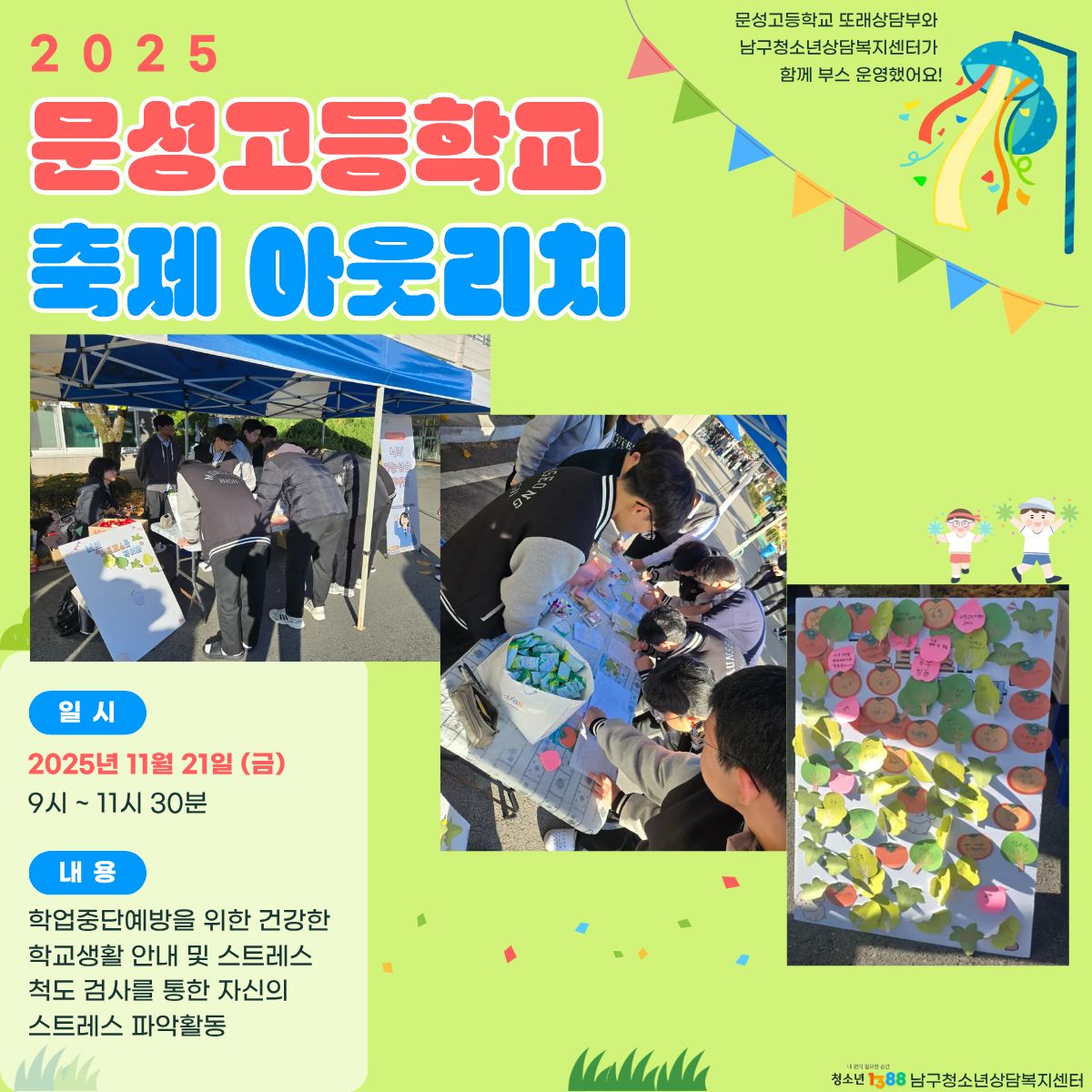 문성고등학교 또래상담부와 남구청소년상담복지센터가 함께 부스운영을 했습니다~❥